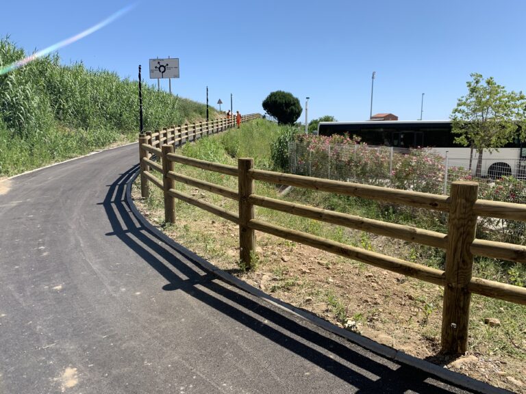 Clôture cylindrique 3 lisses en bois, solution de délimitation sécurisée et esthétique pour les espaces publics et aménagements extérieurs